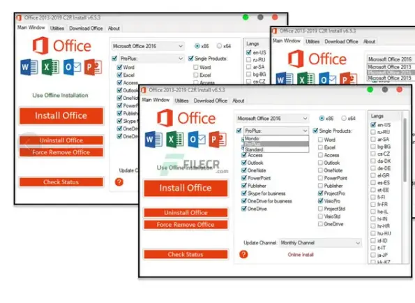 Office 2013-2021 C2R Install / Install Lite for Windows; this program is designed for online installation and activation of Microsoft Office 2013/2016/2019-2021 C2R. You also can create custom installation of Office off-line for use later.